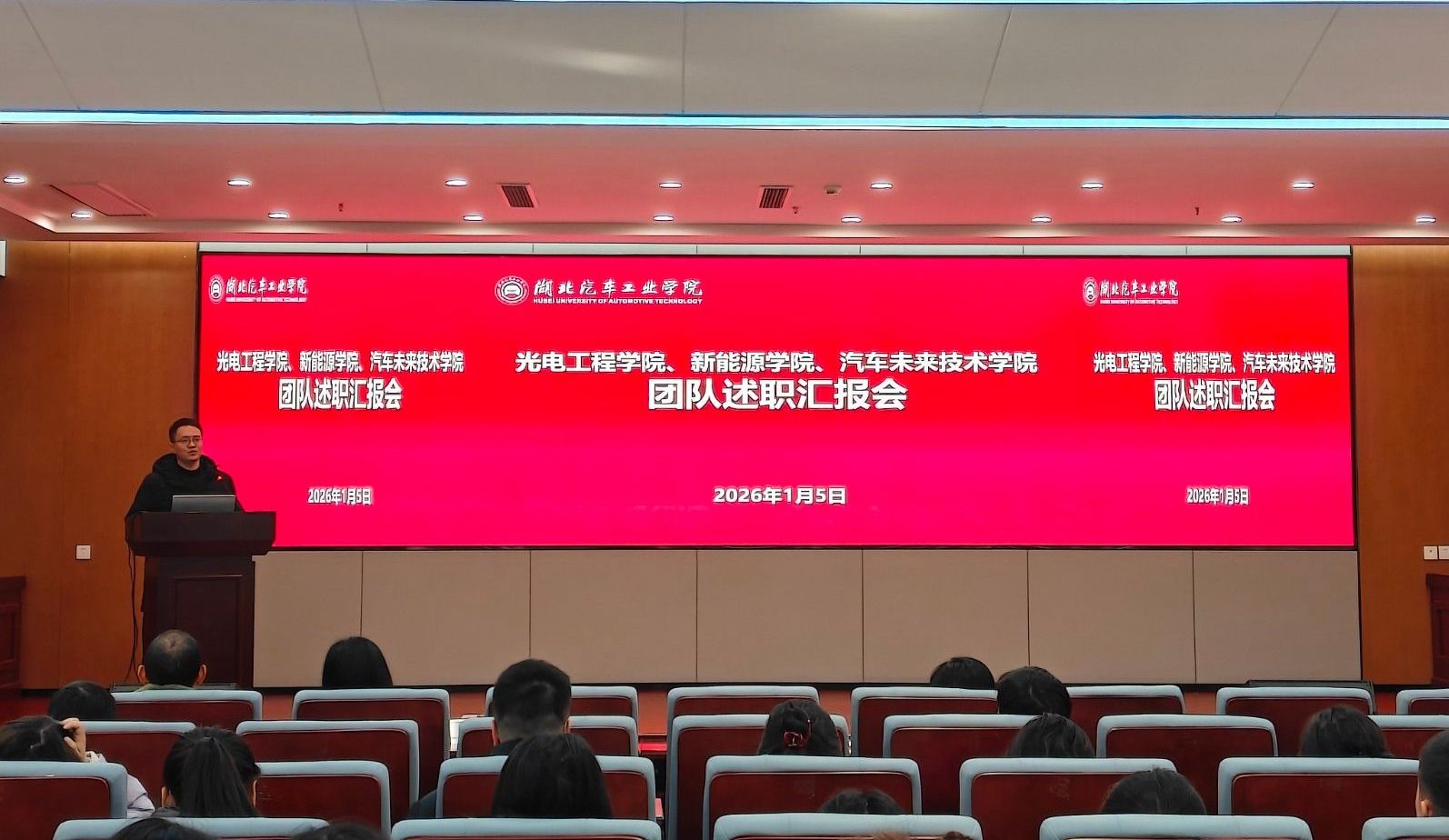 1月5日下午,新能源学院在产教大楼三楼报告厅召开2025年度团队年终述职报告会,学院领导班子及全体教师参加报告会,会议由学院副院长张传坤主持。