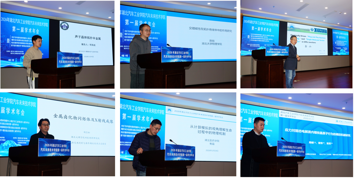 1月19日,湖北汽车工业学院汽车未来技术学院第一届学术年会暨光电子技术省部共建协同创新中心(湖北汽车工业学院)第一届学术年会、储能与动力电池湖北省重点实验室第一届学术年会、电池关键材料绿色智能制造技术湖北省重点实验室第一届学术年会、量子信息与精密光学十堰市重点实验室第二届学术年会在产教融合大楼隆重举行。会议聚焦汽车产业前沿技术,吸引了包括武汉大学、华中师范大学、湖北大学、湖北文理学院、湖北医药学院等院校的专家学者及师生代表100余人共聚一堂,共谋汽车未来技术发展。