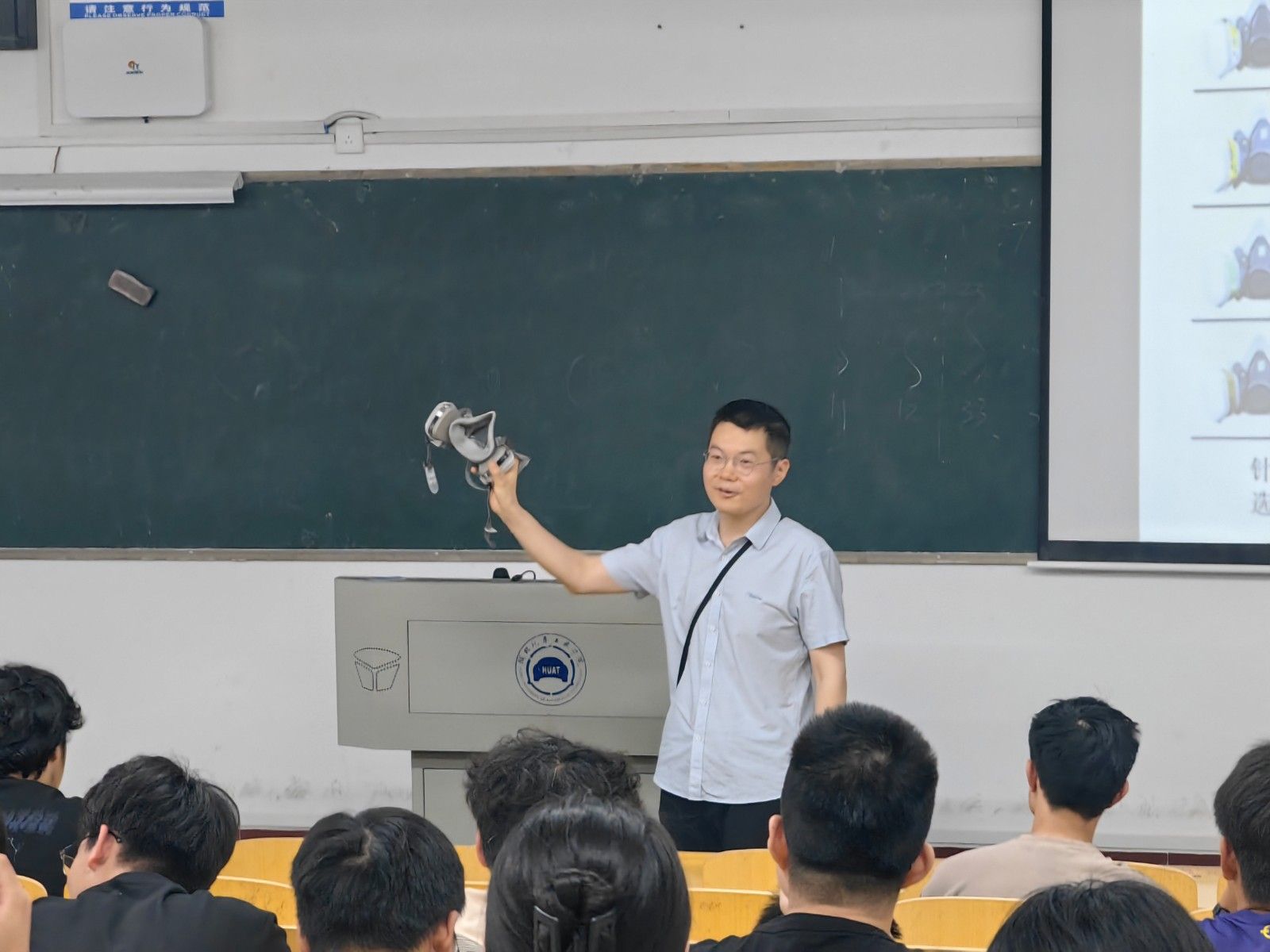 培训会上,罗啸通报了实验室安全核心制度要求,围绕实验室安全风险防控作了重点讲解。他强调化学实验室安全至关重要,全体实验人员必须坚持安全第一、预防为主的原则,必须严格遵守实验室安全规章制度。安全防护是生命线。罗啸从眼部、手部、面部及身体防护四个维度出发,通过现场示范与细致讲解相结合的模式,引导师生深刻理解“生命重于泰山,安全在于防护”的理念。最后,他聚焦化学品安全知识普及,介绍了常用化学危险标识识别方法及化学品性质权威查询途径,指导师生科学评估化学品风险等级,提升风险预判能力。