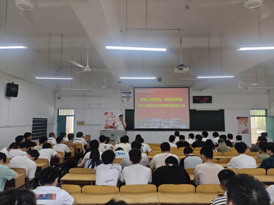 为确保2025届毕业生文明安全离校,营造安全、和谐的离校氛围,扎实推进毕业生离校前的教育、管理和服务工作,增强毕业生爱校荣校情怀和感恩意识。5月25日,在2104教室,新能源学院召开了2025届毕业生安全文明离校教育大会。党委副书记张朋刚、辅导员和全体毕业生参加会议,学工办主任卢旭主持会议。