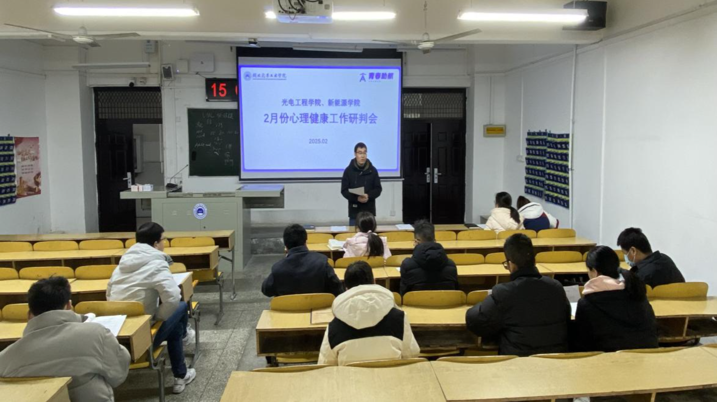 2025年2月24日,新能源学院在1103教室召开期初学生工作例会暨学生心理健康研判交流会,会议由学工办主任卢旭主持,辅导员李萌、秦运来、郭煜及全体班主任参加了会议。