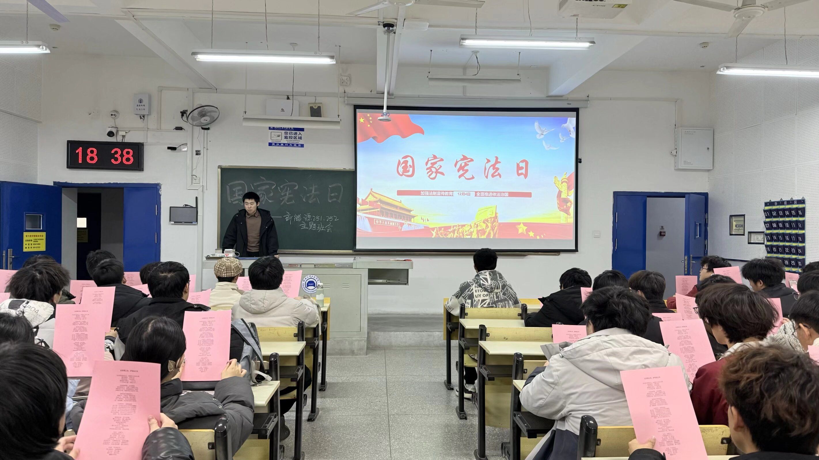 在国家宪法日当天,学院各个班级相继开展了“弘扬宪法精神,争做守法青年”主题班会。班会上,学生干部运用通俗易懂的语言,介绍了国家宪法日的背景和意义,深入解读了宪法与青年学习生活之间的紧密联系。随后,同学们起身庄重地朗诵宪法核心条例,在朗朗的诵读声中,深切感受宪法的严肃性与权威性。大家还围绕“校园生活中践行宪法精神”“工科生如何规范学术行为”等话题展开了热烈讨论,纷纷表示要将宪法意识融入日常生活,做到知法、懂法、守法。