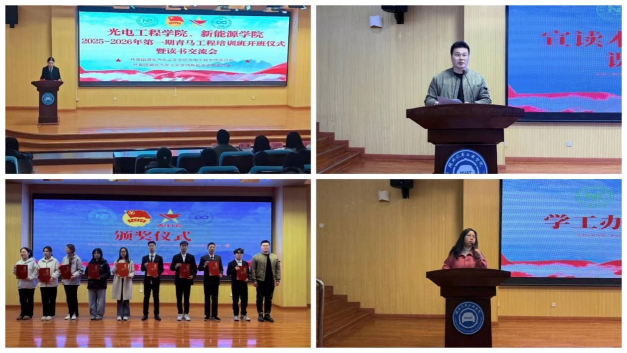 为培养一批信仰坚定、能力卓越、素质优良、作风过硬的青年政治骨干,进一步激发同学们的爱国情怀与奋斗精神,12月2日,新能源学院2025-2026学年青马工程培训班开班仪式暨读书分享交流会在图书馆报告厅举行。学院学工办主任李萌、团委书记秦运来、辅导员王淑君、刘兴洋出席了本次活动,70余名“青马工程”学员参加了此次培训。