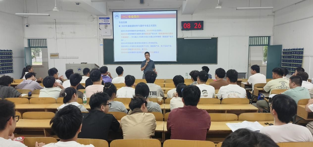 光电信息科学与工程专业负责人王晴岚教授以机器视觉的含义引入介绍,分别从光电技术在工业领域的应用案例、在国家先进领域的重要性、专业发展路径等方面展开讲解;新能源材料与器件专业负责人张传坤和张文娜老师分别从专业的课程设置、开设历史、就业前景、考研深造做了详细介绍。材料物理、功能材料、储能科学与工程等专业负责人也分别从学科特色与行业发展趋势等多个关键维度展开讲解,详细梳理了各专业的课程体系,帮助学生建立系统化的学习思路,又结合各专业在相关领域的广泛应用,分析了相关岗位的能力需求与职业发展前景,让学生们对未来职业选择有了更清晰的认知。