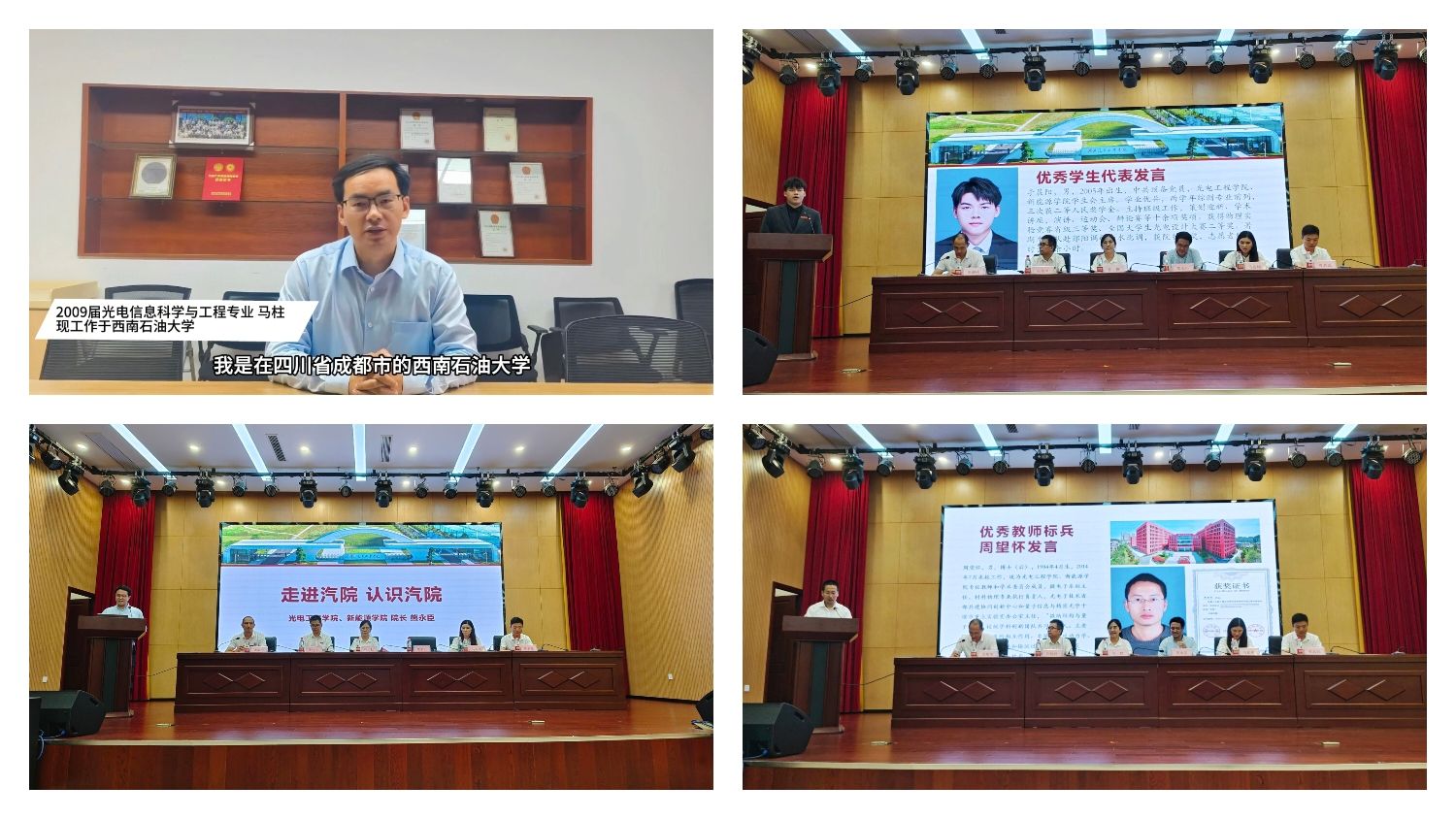 典礼现场,校友寄语视频传递着学长学姐对新生的殷切期许,让现场充满温情与动力。伴随着庄严的国歌声,开学典礼正式拉开帷幕。院长熊永臣以“走进汽院,认识汽院”为题讲授“开学第一课”,他从学院发展历程、学科特色、科研平台等方面深入剖析,激励新生锚定专业方向,在光电与新能源领域深耕细作,以科创之力绘就青春底色。