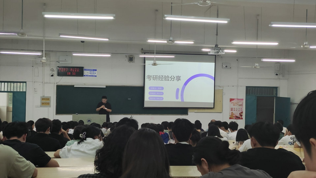 针对22级考研学生,学院邀请了2025届考研成功的学生代表郑志庆、肖岳分享考研经验,他们用自身实践经历分享切身体会,就考研学习方法、考研目标、择校经验、资料准备、考研时间安排、学习计划制定、考试注意事项和推免面试等方面的问题进行了详尽的解答,将宝贵的经验与见解传递给各位备考同学。
