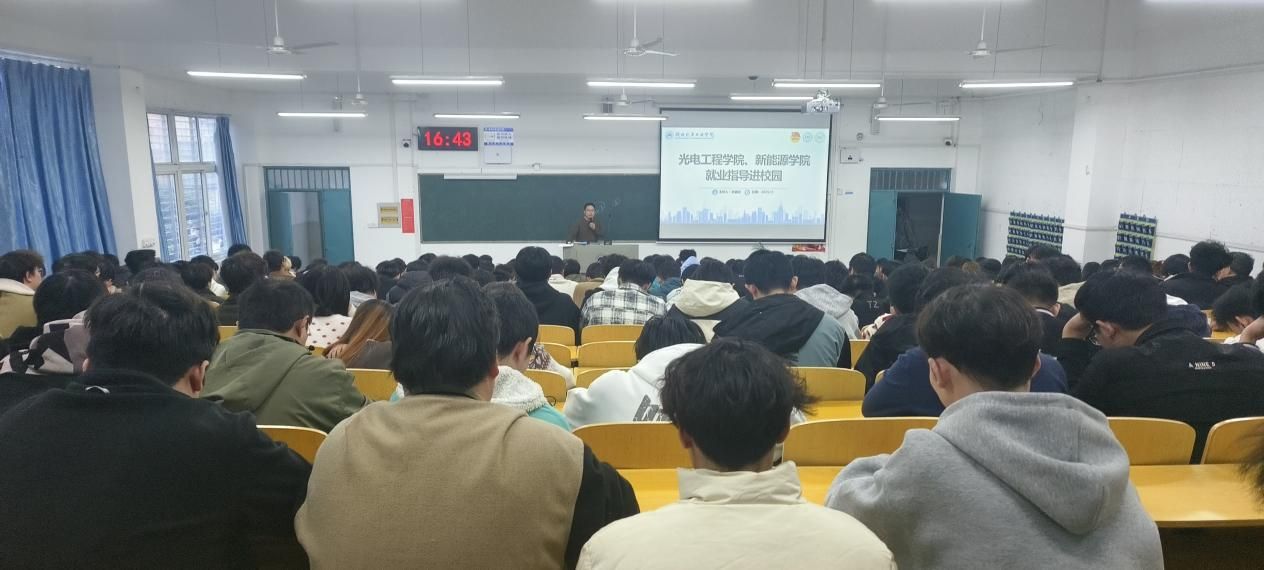 为帮助在校学生了解就业形势,树立正确的职业观、提升求职竞争力,11月23日下午,新能源学院举办“就业指导进校园”专项活动。学院全体辅导员、2026届及2027届毕业生共同参与此次活动,活动特别邀请到十堰灵鹏教育科技有限公司负责人李鑫武现场为同学们带来一场干货满满的就业指导分享。
