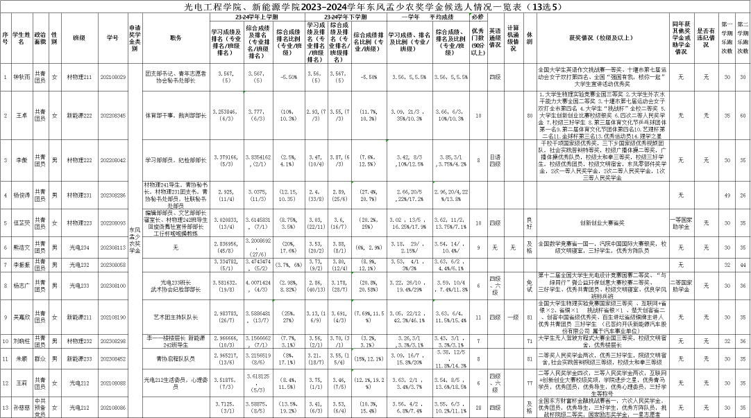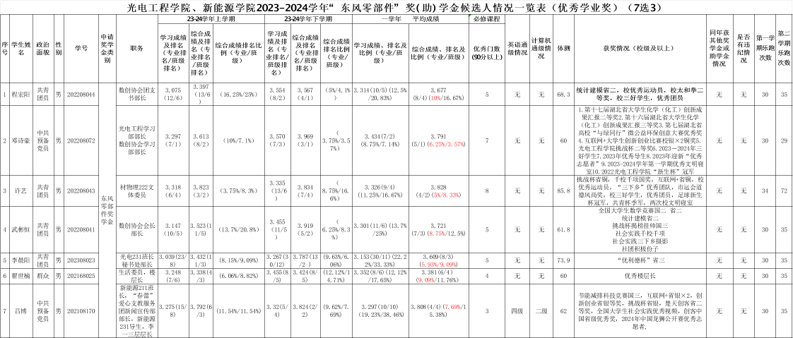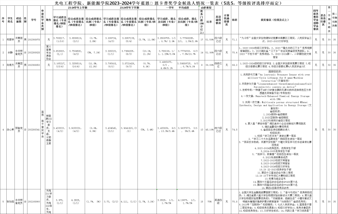 光电工程学院、新能源学院2023-2024学年社会奖学金评选初审候选人公示如下: