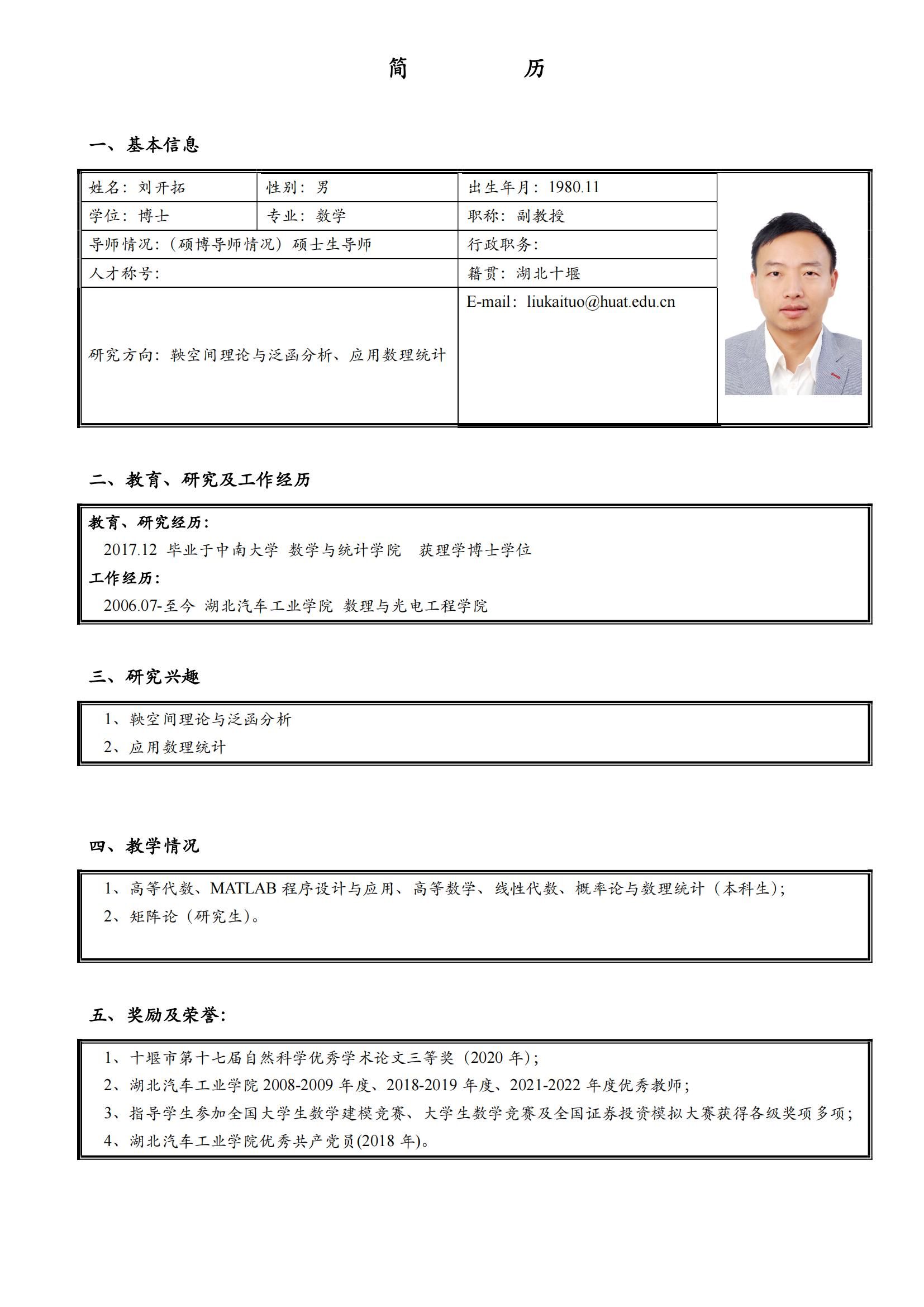 刘开拓副教授